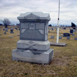Description: Granite monument. Inscribed on the front is: “In Memory Of ~ Our Soldiers ~ Who Fought In ~ The Great Rebellion ~ Of 1861 And 1865”. The carved decorations include flags and crossed sabers with G.A.R. emblazoned. It has been reported that Post 180 erected this monument at a cost of $500.