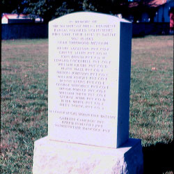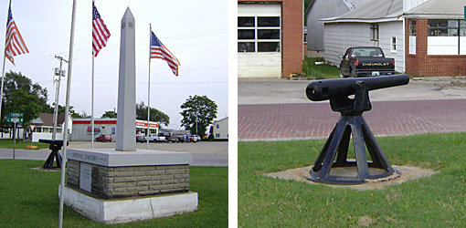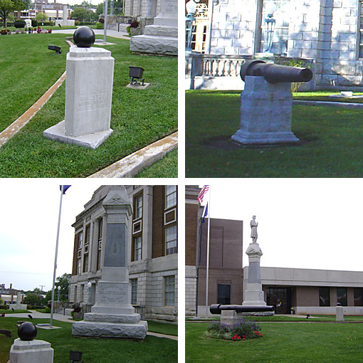 A third memorial is a three sided concrete column with a cannonball mounted on top. The side of the monument is engraved: “GAR badge ~ Wm H. Lytle ~ Post, No. 32 ~ Mustered Dec. 12, 1881