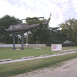 Description: A large park like setting includes a flag pole with a stone base, a helicopter, a tank, and a gazebo. The sign in front reads: “Chase County ~ All Veterans ~ Memorial ~ “And for the support of this Declaration, with a firm reliance ~ on the Protection of Divine Providence, we mutually pledge ~ to each other our Lives, our Fortunes and our sacred Honor” ~ The Declaration of Independence”. Next to that is: “The ~ Chase County ~ All Veterans Memorial ~ is dedicated to ~ honoring all Chase ~ Countians who have ~ served in the armed ~ forces of the United ~ States of America. ~ Please spend quiet ~ moments in memory ~ of those who made ~ the supreme sacrifice ~ for their country and ~ to honor all veterans.”