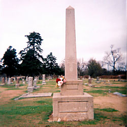 Description: A granite spire is erected on a large concrete base. The lowest level of the spire is engraved: “Dedicated to the ~ Memory of the Defenders ~ of our Flag ~ 1861 – 1865”. Crossed rifles, crossed sabers, crossed cannon barrels decorate the other sides of this level.
