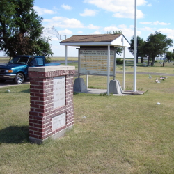 Description: The Greeley County Historical Society commemorated this with a granite marker that is engraved: “John K, Rodgers – died January 1886 ~ Lincoln Rodgers – died January 1886 ~ Lost their lives in the blizzard of January 1886 while return ~ ing to their homestead. They were the first to be buried in ~ what was then known as the Rodgers Brothers cemetery. ~ Their faithful collie, buried beside them, had gone to the ~nearest town and led some men to their bodies. The land they are buried on is part of the land they were homesteading. This 3 acres was deeded by their father, John ~ Rodgers, to the Army Post No. 475 G.A.R. on January 6, 1891 ~ donated by Greeley County Historical Society 1991” The cemetery is overgrown but, in addition to the commemoration marker, there are still a number of government issue headstones for veterans of the PA Cavalry and Ill Infantry.