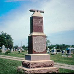 Description: Granite cannon representation surmounting (and part of) large monument. The South face of monument has American flag with 13 stars above following: “Erected ~ Through The Efforts Of ~ Will Wendel Post No. 46 ~ Department Of Kan. Grand ~ Army Of The Republic And ~ Their Auxiliary Womans ~ Relief Corps No. 15 ~ Dedicated To The Memory ~ Of The Union Soldiers And ~ Sailors For Their Service ~ In The War Of ~ 1861-1865”. On a lower basal slab is inscribed: “May 30, 1916”.