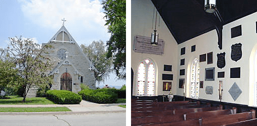 Description: The Fort Leavenworth Chapel was built in 1878 and Rededicated in 1978. The interior has 3 polished mountain howitzer tubes mounted in the walls on each side. There are a large number of plaques and dedications to officers and men who served in the Civil War, the Indian Wars, and World Wars I and II.