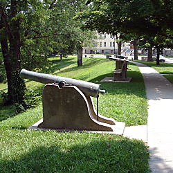 Description: Three bronze 12 pdr Napoleons are placed on concrete mounts at the overlook to Dragoon Glen (across the street from Grant Hall).