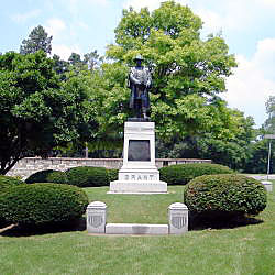 Description: The inscription on the statue, west side, is as follows: “This statue was erected by ~ officers and enlisted men and ~ employees of the Quartermaster’s ~ Department of the U. S. Army; ~ citizens of the states of Kansas ~ and Missouri, including ~ the Leavenworth Athletic Association; ~ Woman’s Relief Corps No. 40, Wichita, Kan.; ~ Post 132, G. A. R., Junction City, Kan.; ~ the Traveling Men’s Grant Monument fund; ~ the subscription list of the Kansas City Times; ~ J. A. Garfield post No.2, Chamberlain, Dakota; ~ citizens of Philadelphia, and others.” On the north side of the pedestal or base is a bronze tablet showing Grant mounted at the head of his staff. An inscription on the base reads: “Hodges & McCarthy ~ St Louis, MO”.