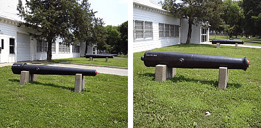Description: Three cannons are mounted on concrete stands in front of the Frontier Military Museum on the Fort Leavenworth grounds. The Parrott (western most tube) has “No 108” on the muzzle and “RPP ~ WPF ~ 1862” on the trunnions. The middle cannon (24 pdr) has “LB 8” on the muzzle and “WPF ~ 1826” on the trunnions. The eastern most tube (also a 24 pdr) has “WM ~ No 176” on the muzzle and “McC W & Co ~ PFP ~ 1838” on the trunnions.