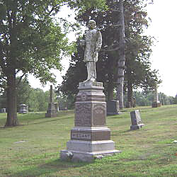 Description: Soldier at attention in dress military clothing. The monument inscriptions read: “Col. J.H.E. Wiegant ~ born ~ May 7, 1852 ~ Died Feb 11, 1895 ~ Dear Little verse, the careless eye ~ and needless heart will pass thee by, ~ and never attest thou hope to be ~to others as thou art to me. ~ For lo, I know thy bliss and woe ~ thy shallows, depths, and boundless ~ heights ~ how thou wast wrought, , patient and ~ Slow ~ through crucibles of sleepless nights”, “Wilhelmina W. Wiegant ~ May 31, 1856 ~ Nov 1, 1927” and “Rose S Wiegant ~ born ~ Dec 1, 1876 ~ Died Mar 22, 1905 ~ Hannah R. Wiegant ~ Nov 27, 1827 ~ Nov 26, 1908”