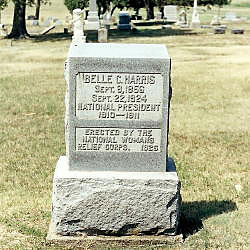 Description: This granite monument commemorates Belle Harris, National President WRC. The inscription reads: “Belle C. Harris ~ Sept 6, 1856 ~ Sept. 22, 1924 ~ National President ~ 1910-1911 ~ Erected By The ~ National Woman’s ~ Relief Corps. 1926”.