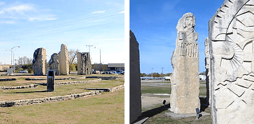 Description: This grouping of stone pylons was erected in 1994. These were a project of Richard Stauffer, Emporia Arts Council and the 1992 Kansas Sculptors Association.