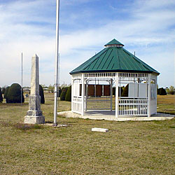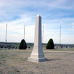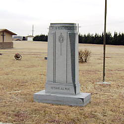 Description: Granite monument located in the center of a ring of flags. Inscribed on the front is: “This Monument Was Erected ~ By The American Legion ~ Auxiliary Of Meade, Kansas, ~ Assisted By Ex-Service Men ~ And Patriotic Citizens, And On ~ May 30, 1927 Dedicated To The ~ Memory Of Meade County’s ~ Departed Veterans Of All Wars. ~ It Also Replaces The Monument ~ Placed Upon This Site In 1886 By ~ Meade Center Post No. 388 G.A.R. ~ Dedicated To The Unknown Dead ~ Of The Civil War.”