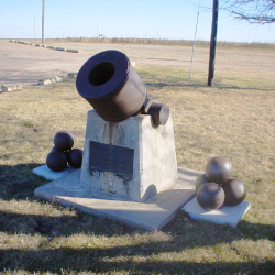 Description: The cannon is on a concrete mount, outside the Sante Fe Trail museum. The cannon is bronze 10-inch siege mortar. The inscription on the concrete mount dedicates the site to the Mormon Battalion and their actions near here in the 1840s.