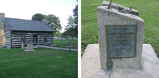 Description: There are two cement cannon mounts in front of the Pioneer Log Cabin in the Manhattan City Park. The north mount has a bronze plate reading: “Dedicated ~ to ~ the memory ~ of the ~ Spanish American ~ War Veterans ~ 1898- 1892 ~ by the ~ Wilbur Samuals ~ Auxiliary No 13 ~ Dept of Kansas ~ N.A.U.S.W.V ~ Oct 27 – 1937”. The south mount has a corresponding dedication reading: “Dedicated ~ to ~ The Union Soldier ~ 1861-1863 ~ by ~ the Ladies ~ of ~ the Grand Army ~ of ~ the Republic ~ Manhattan Circle ~ No 45 ~ Jan 2, 1937”. The cannons were removed for a World War II scrap drive.