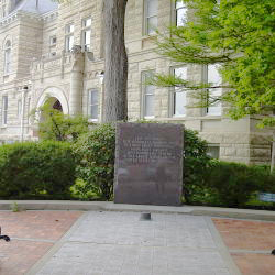 Description: A granite monument in front of the court house is inscribed: “Lest We Forget. ~ This Monument Is Dedicated ~ To Those Brave Individuals ~ From Riley County ~ Who Honorably Served ~ In The Armed Forces Of The ~ United States Of America”.
