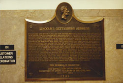 Description: A bronze plaque mounted in the Post office reads: “Lincoln’s Gettysburg Address ~ {text of the Gettysburg Address} ~ This Memorial Is Presented ~ By ~ Sue Lovell Tent No. 8 – Topeka ~ Daughters Of Union Veterans Of the Civil War ~ 1861-1865 ~ 1936”.
