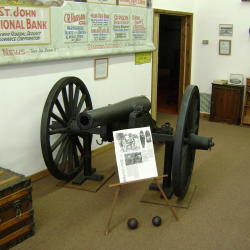 Description: A 3-Inch Ordnance Rifle is mounted on a wooden carriage. This was obtained by the local GAR post in May 1908 and dedicated along with newly placed limestone monument on 4 June 1908 in the City Cemetery.