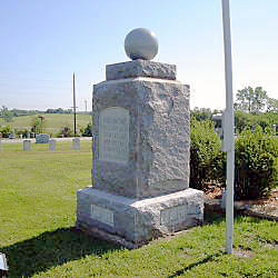 Description: A large polished granite ball is mounted on top of a gray granite base. The front is inscribed: “In Memory Of ~ Those Who Gave ~ Their Lives In ~ Defense Of ~ Their Country”. “G.A.R.” is carved on the base.