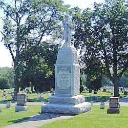 It is reported that the dedication was Memorial Day 1911 by the Captain John W. Kingscott Chapter, W.R.C. No. 177, Department of Kansas, Argentine G.A.R. and Women’s Auxiliary, Wyandotte G.A.R., Shawnee G.A.R. and K.C. Chapter of the L.G.A.R. Space for the memorial was given by the cemetery owner. Cost of monument was $1,500 plus $200 for curbing.