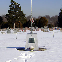 Description: A small bronze marker is mounted in the cemetery. It is inscribed: “In Service To Their Country ~ The William E. Connelley Survey ~ Of 1895-1896 Indicates A Large ~ Grave In The Area By ~ Tradition, Union Dead Were ~ Buried In This Part Of The ~ Huron Indian Cemetery ~ Following The Battle Of ~ Westport, October 21-23, ~ 1864.”